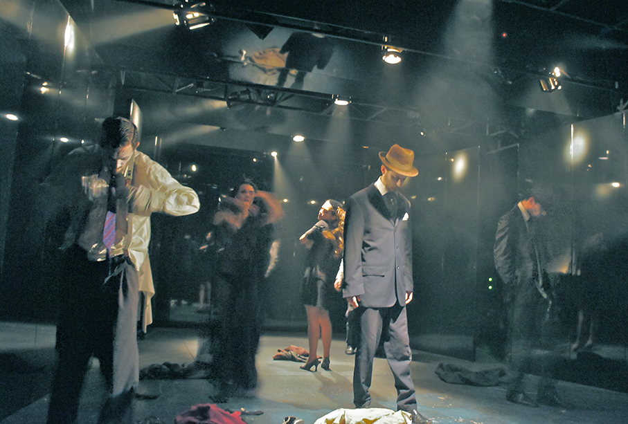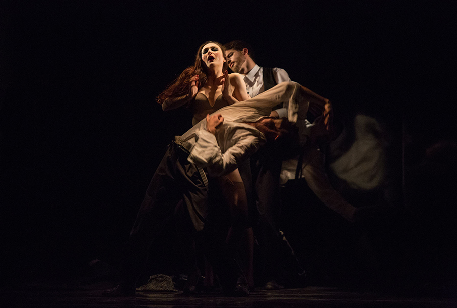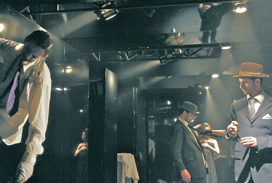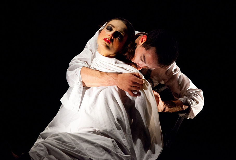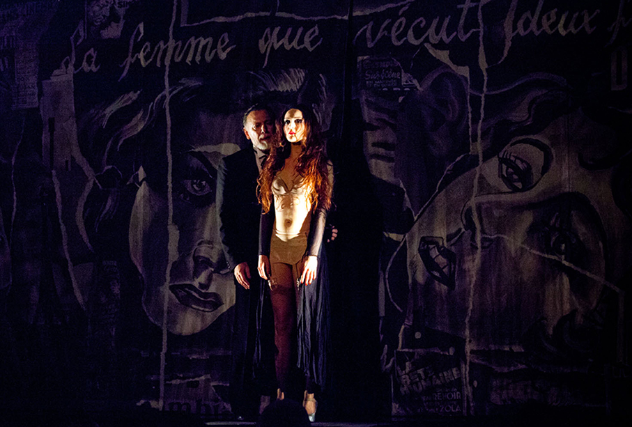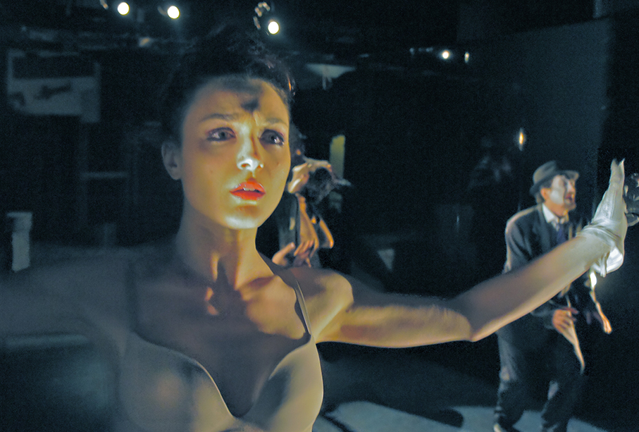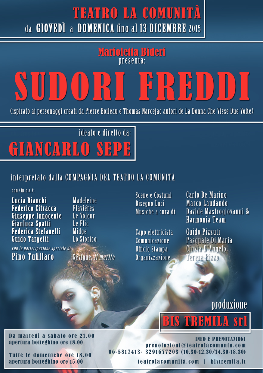 Che suggestione trattare dei temi legati ad un grande film! Di colpo il teatro sembra poter contenere nei suoi spazi angusti le geometrie e le prospettive di un set cinematografico, le strade di San Francisco con i suoi saliscendi, i pedinamenti fatti nel museo nazionale o al cimitero della città, insomma un sogno (non a caso negli ultimi tempi si sono moltiplicati gli spettacoli tratti da famose pellicole, il fatto è che anche il teatro ha bisogno di storie). La donna che visse due volte, il famoso film di Hitchcock è tratto da un romanzo del duo Pierre Boileau e Thomas Narcejac gli autori del film I Diabolici di Henri-Gorge Clouzot, il grande regista inglese vide il film e commissionò loro una storiatutta per lui, ed ecco il romanzo D’entre les morts, da cui trasse, secondo un recente sondaggio, il “miglior film della storia del cinema”, insomma un capolavoro! Come dire che nella mia testa quelle atmosfere, quegli incubi, quella morte dalla torre campanaria, quella fuga sui tetti da cui trae il pretesto tutto il film: il protagonista nell’inseguire un criminale scopre di essere affetto dall’acrofobìa, da quel senso di perdita di coscienza e sballottamento che crea la vertigine (Vertigo è il titolo americano), la vertigine che ha come effetto immediato il sudore freddo, quello che nasce dalle paure notturne, dai grandi spaventi, dalla paura della morte. Nel leggere il romanzo poi ecco arrivare la grande sorpresa: la storia non si svolge a San Francisco negli anni ’50 ma a Parigi nel 1939/40 e dopo a Marsiglia. Si respira un’atmosfera da realismo poetico alla Prevert e Cocteau, l’amore, quello vero, prende il suo posto centrale nella storia, la storia criminale si depotenzia e affiora un grande melò, si narra di amori impossibili per persone che non esistono, di amori negati, ci sono donne che amano uomini che amano fantasmi, ci sono i tunnel dell’amore dove riecheggiano le frasi degli innamorati, ma anche i pericoli dell’amore, la dedizione fino al sacrificio, il finto suicidio, il vero assassinio, in più tutti i personaggi sono figli della guerra, uomini emaciati e provati dalla carestia e dall’amore non corrisposto, una specie di lager dove esplodono cose (la guerra) e cuori (l’amore). Da tutto questo ho voluto provare a raccontare le cose che il film e il romanzo avevano trascurato di raccontare, e ne viene fuori un racconto ellittico, tutto inventato, tutto sotterraneo, fatto di camere mortuarie e funerali, di scene conturbanti, vive e sanguigne, tutto si svolge di notte come fosse raccontato da personaggi alla deriva, senza dimora, personaggi che si mischiano ai morti e ad antenati spagnoli dediti al sacrificio di sé, a padiglioni da fiera dove La Donna che visse due Volte non è che un fenomeno da baraccone, come la donna cannone di De Gregori, e dove l’imbonitore non è che il mago organizzatore di un delitto che sa d’inferno, dove precipita Euridice subito rincorsa da Orfeo. Un vero noir senza storia, con l’idea di raccontare le iconografie del giallo che fà da sfondo ad una storia passionale. Tutto immerso in musiche di Poulenc, Lully, Lennon, Loussier, Adams, Herrmann, e le canzoni di Trenet e tanto altro ancora: uno struggimento pieno di dolore e rapinoso come la morte inferta dal proprio amore impossibile.